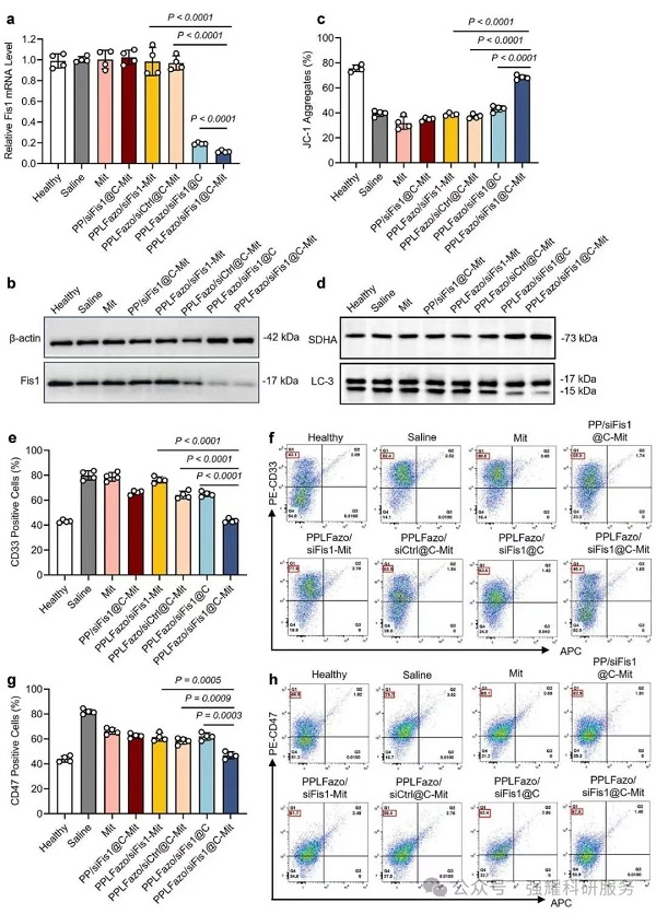 (2)Fis1 siRNA:沉默Fis1后,LSCs 的线粒体自噬功能受损,自我更新能力骤降,最终失去 “永生” 特性,变得对化疗敏感。