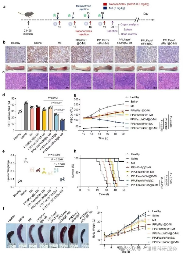 Fig 5. PPLFazo/siFis1@C在AML小鼠模型中的初始治疗效果
