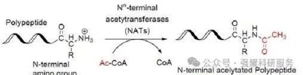 Nα-乙酰化是由N-α-乙酰转移酶(NATs)介导,在底物蛋白的N端氨基酸α-氨基上添加乙酰基的过程。在真核细胞中,Nα-乙酰化通常发生在蛋氨酸的游离氨基或发生在N端蛋氨酸裂解后暴露的氨基酸上。